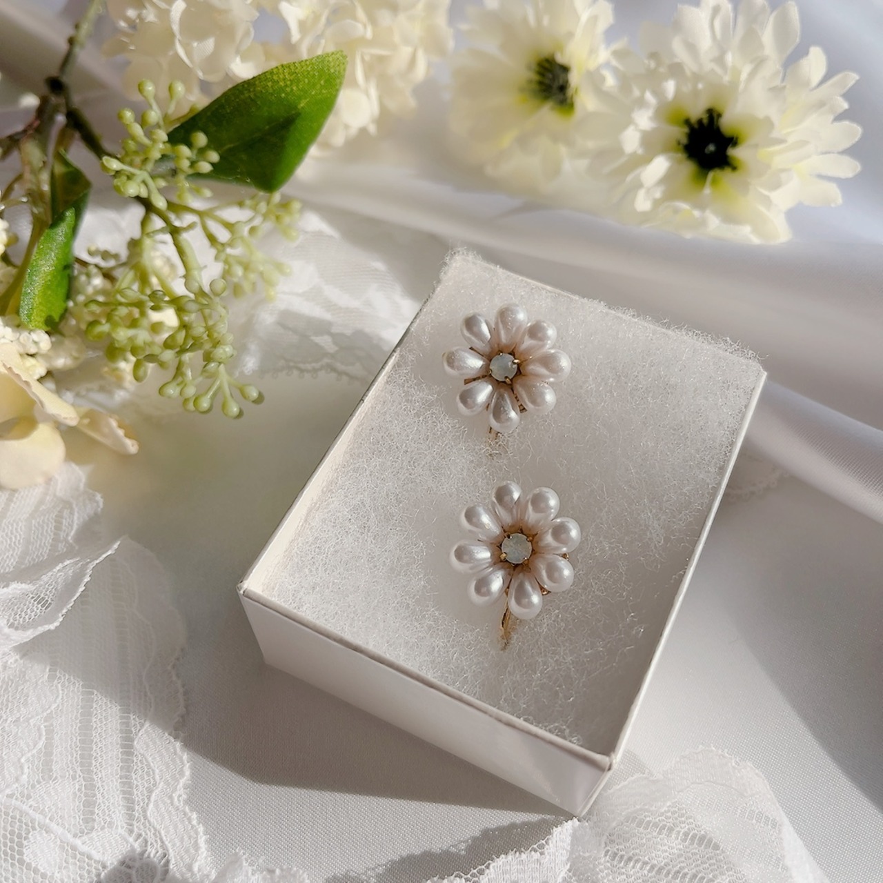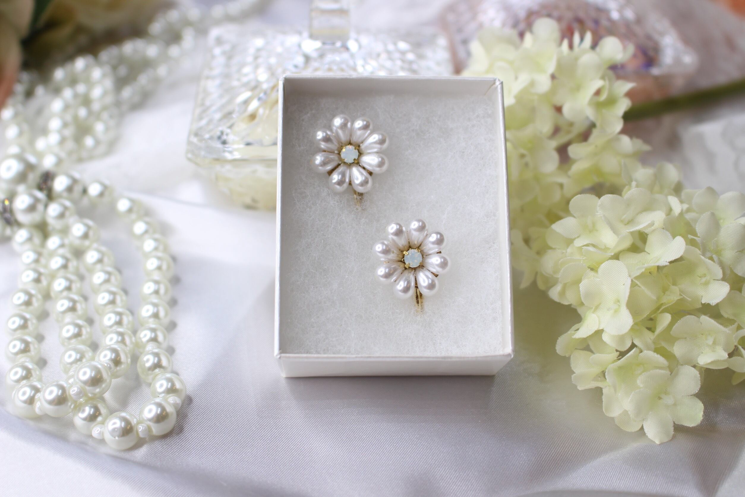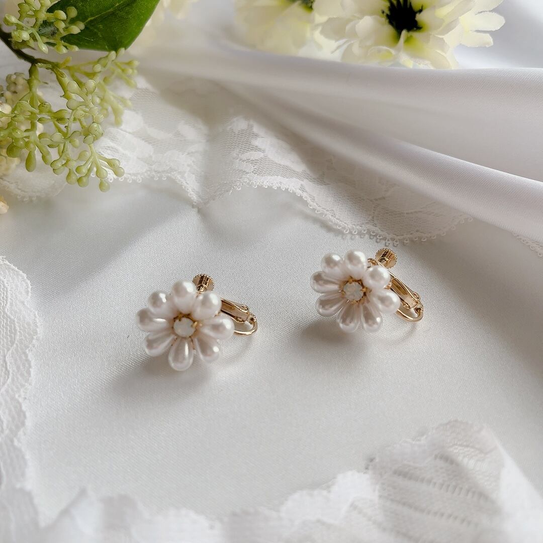 パールお花イヤリング